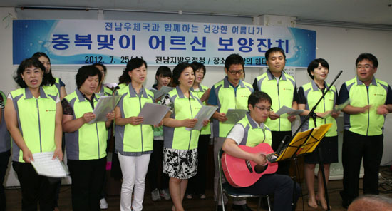 이날 사랑 나눔 실천은 식전행사로 결식 및 무의탁 어르신들을 모시고 광주광산우체국 한병수 국장의 섹스폰 연주와 우정청 직원의 노래 등 문화공연으로 시작됐다. 또한 중복을 맞이하여 800여명의 어르신들에게 삼계탕과 과일 등 보양음식을 준비해 드리고, 쉼터 청소 및 설거지 등을 하며 의미 있는 시간을 보냈다.
