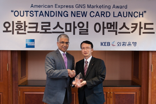 | 외환은행 권혁승 카드본부장(오른쪽)과 아메리칸 엑스프레스 쿨라 쿠렌드란 아태지역 총괄사장(왼쪽). | ||