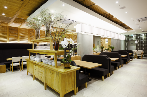 | 옅은 나무색과 화이트컬러의 인테리어로 한국 전통의 멋을 세련되게 풀어낸 '모락' 매장. | ||
