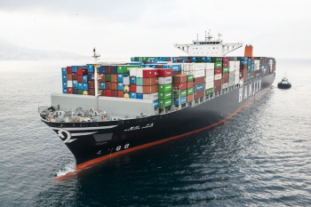 | 운항 중인 국내 최대 컨테이너선(1만3100TEU급) 한진수호호 모습. | ||
