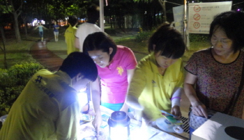 포스코건설은 이달 ‘송도 더샵 그린워크3차’ 분양을 앞두고 야간홍보활동에 여념이 없다. 열대야로 잠 못 이루는 사람들이 공원·마트 등으로 몰린다는 점에 착안해 밤마다 이들을 직접 찾아다니며 상품알리기에 나서고 있는 것이다. 또 여름철 필수품인 모기퇴치팔찌를 나눠주고, 삼삼오오 나온 가족들끼리 저녁시간을 즐길 수 있도록 배드민턴 라켓, 캐치볼 등도 대여하고 있다.
