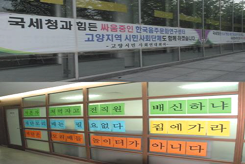 [프라임경제] “국세청과 힘든 싸움중인 한국 음주문화연구센터, 고양지역 시민사회단체도 함께 하겠습니다.”, “앞뒤 안 가리고 재단 팔아먹는 모리배는 재단을 떠나라!”