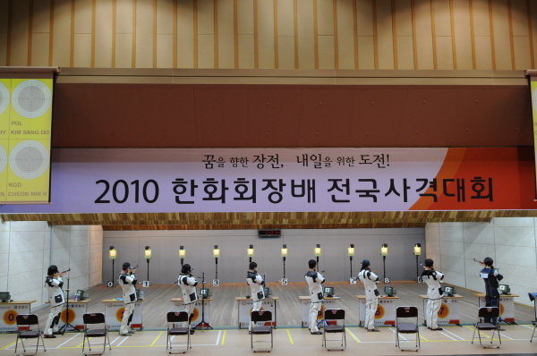 지난 2008년부터 기업이 주최하는 최초 사격대회인 ‘한화회장배 전국사격대회’를 창설했다. 국내 대회 중 유일하게 △전 종목 △전 부별로 종이표적보다 3배가량 고가인 전자표적으로 경기를 진행하면서 선수들에게 크게 영향을 미쳤다. 대부분 국내대회가 종이표적으로 진행된 반면, 국제대회는 전자표적으로 경기를 치르기 때문이다.