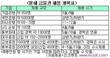 나섰던 금융권 이 필요 인력을 확보함에 따라 올해 채용계획을 보수적으로 잡고 있기 때문이다.