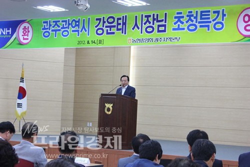 강 시장은 지난 14일 오후 농협광주지역본부(본부장 박태식) 2층 대강당에서 ‘농업, 광주 그리고 대한민국’ 이라는 주제로 특강을 실시했다.