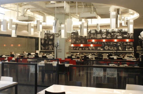 | 화이트, 레드, 블랙 컬러가 조화를 이룬 누들52 매장. 심플하면서도 밝은 분위기를 풍긴다. | ||