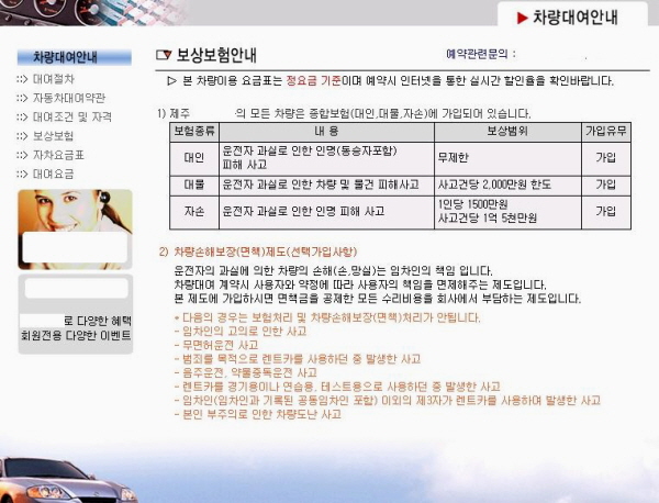 | 제주시 모 렌터카 업체 홈페이지의 차량대여 보상보험 안내 관련 내용 | ||