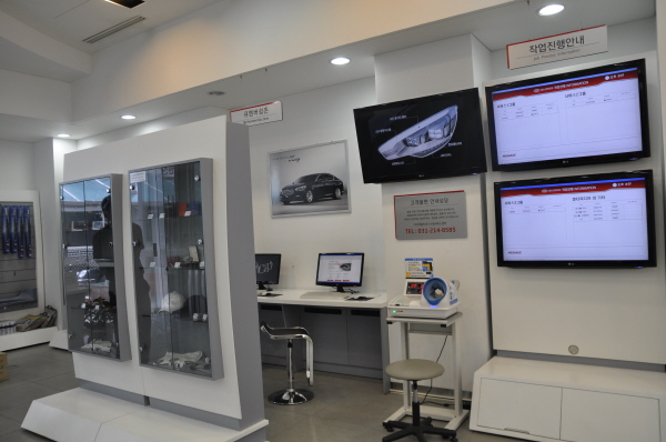 다수의 안마기와 체지방 측정기 등 전문 장비가 마련돼 있는 헬스케어실은 정비를 기다리는 시간 동안 체지방과 혈압을 측정하는 등 건강상태를 체크할 수 있어 가장 인기가 높다. 여기에 부담 없는 간단한 다과를 제공하는 고객 라운지, 여성 고객 전용 쉼터 등 고객 성향을 배려한 흔적도 곳곳에서 심심치 않게 발견할 수 있었다.