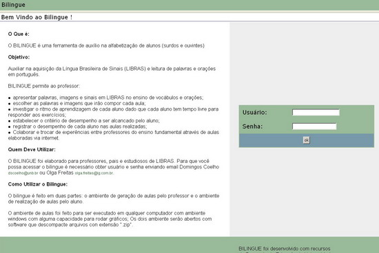 이 홈페이지를 통해서 청각장애인의 교사들은 자료를 복사해 학교에서 수업자료로 사용할 수 있다. 홈페이지에 준비된 자료는 기호언어를 알고 있는 사람이 청각장애인들에게 포르투갈어를 가르치는데 용이하다. 이 홈페이지에서 교사들이 수업 자료를 만들 수 있으며 다른 교사들을 위해 자료를 올릴 수 있는 기능도 있다.