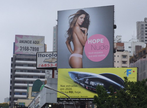상파울로 시에서 외부 광고판의 효과가 가장 좋은 강변도로의 상파울로 조께이 클럽 벽을 따라 연이은 30개의 대형 광고판 중에는 현재 4개만이 남아 있다.