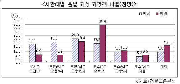 시간대별로 보면 귀성시에는 오전 9시~낮 12시, 귀경시에는 낮 12시~오후 6시 사이에 출발하려는 사람이 가장 많아 혼잡이 예상되고 있다.