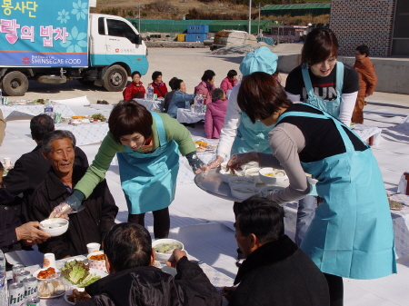 가수 현숙, 박진선, 미스코리아 유니 등 연예인과 함께 섬마을을 찾은 신세계푸드 엔젤봉사단 20여 명은 설날을 맞아 더욱 외로운 독거노인들을 위해 떡국을 끓여내고 돼지 2마리를 잡아 흥겨운 마을잔치를 벌였다.