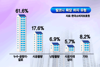 실제로 한국소비자보호원이 지난해 1월부터 10월까지 접수된 발코니 확장관련 소비자피해상담 277건을 분석한 결과, 공사 후 하자 관련 피해가 57.4%로 가장 많았고, 계약 관련 피해 32.1%, 시공지연 7.6% 등으로 나타났습니다.