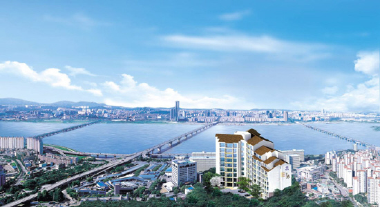 한강秀 아파트는 40~91평형으로 구성되어 있으며, 천연대리석 등의 고급 마감재와 편의시설을 갖췄다.