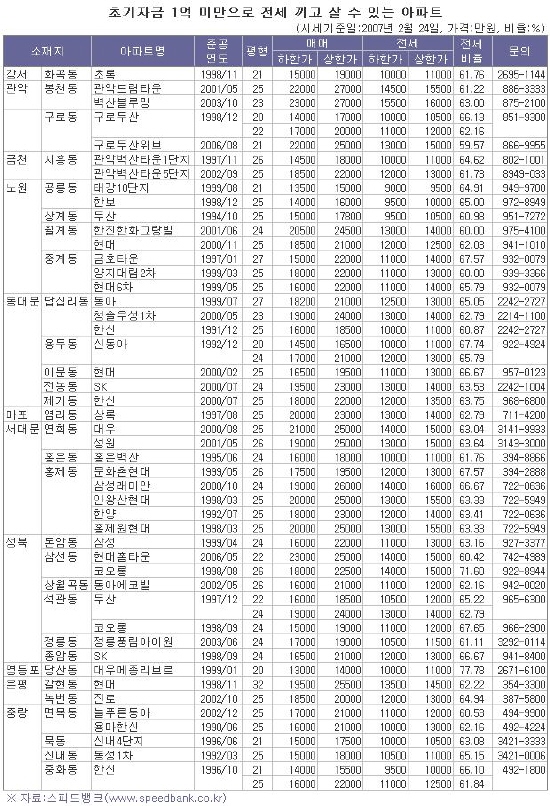 매매가 대비 전세비율이 높을수록 자금부담은 더욱 줄어든다. 신혼부부와 독신자들의 전세수요가 풍부한 강북지역이 이에 해당되는데 결혼이나 이사 시즌 때마다 새로운 전세수요가 유입되고 있어 전세회전율이 다른 곳에 비해 높다.