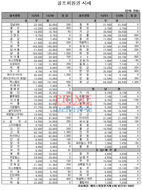 [프라임경제] 연말과 연초를 맞아 골프회원권 시장도 전체적으로 연말 분위기가 팽배하며 거래량은 대폭 줄어든 모습이다.