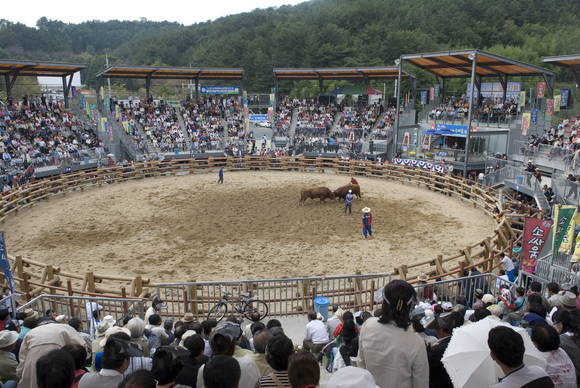첫째는 관중들의 웃음을 수시로 자아내는 해설사의 구수한 입담이다. 해설사는 소싸움의 기술을 설명하면서 마치 소들의 마음을 읽어내는 듯한 풍자를 곁들이기도 하는데 색다른 맛이 있다.