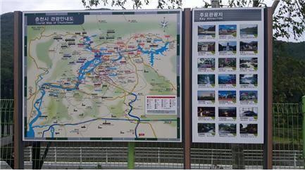 춘천 관광안내도는 강원도 춘천을 처음 찾는 고객들에게 정확한 위치와 춘천의 유명한 볼거리 및 먹거리 정보를 제공하는 등 이용객 눈높이에 맞게 제작됐다.