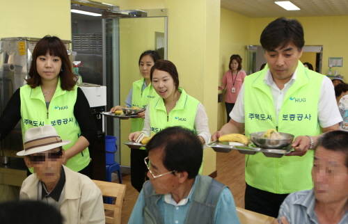 이날 HUG 아우르미 봉사단은 부산 남구종합사회복지관에서 남구 우암동 일대 저소득 거주 노인 200명에게 삼계탕을 대접하고, 거동이 불편한 독거노인 1000명에게는 삼계탕을 직접 가정으로 배달했다.