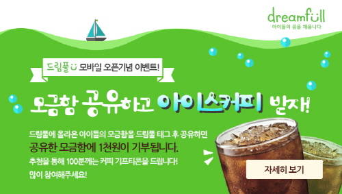 모바일 오픈 이벤트에서도 SNS 공유기능을 활용하고 있다. 드림풀 모금함을 페이스북과 카카오스토리에 공유하고 드림풀 해시태그(#드림풀)만 달면 해당 모금함에 1000원이 기부된다. 또한 모금함 공유에 참여한 100명을 선정해 아이스커피를 증정한다. 이벤트 후원금과 경품은 모두 한국타이어에서 후원하고 있다.