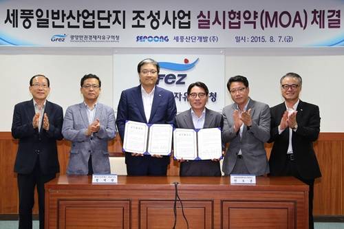 광양만권경제자유구역청(이하 광양경제청)은 7일 세풍산업단지 조성사업의 본격적인 추진을 위해 개발사업시행자인 세풍산단개발(주)과 실시협약(MOA)을 체결했다.