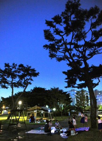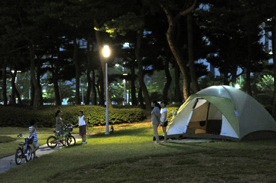 가족들끼리 오랜만에 진지한 대화를 나누기도 하고, 재미있는 게임을 하며 즐거워했다. 옹기종기 모여앉아 맛있는 음식을 먹는 가족들, 잔디밭에서 아이와 씨름하는 아버지, 딸 아이와 배드민턴 치는 엄마, 자전거를 타는 아이들…. 시청 앞 잔디광장은 어느 곳보다 훌륭한 캠핑장이고 피서지며 놀이터였다.