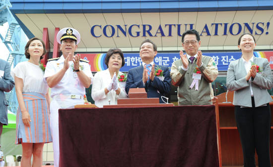 [프라임경제] 윤장현 광주광역시장이 11일 경남 창원 STX조선소에서 열린 해군 차기호위함 '광주함' 진수식에 참석했다.