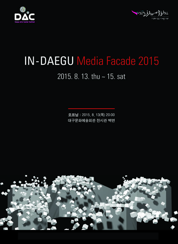건축과 미술작품, 빛과 사운드를 일체화한 예술 공연인 미디어파사드가 대구문화예술회관 건물전시관 벽면에서 'IN-DAEGU Media Facade 2015'란 타이틀로 펼쳐진다.