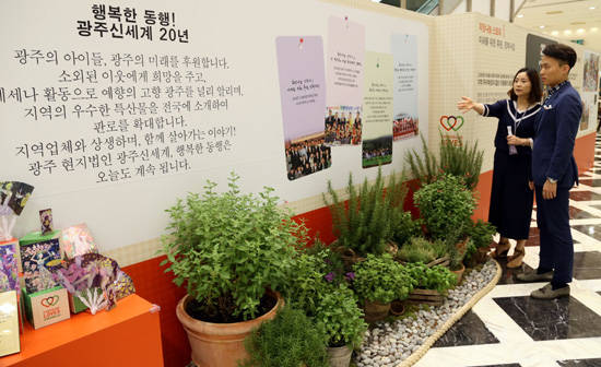 이번 홍보관은 광주신세계의 주요 상생활동 내용, 영상관, 이벤트존, 포토존 등으로 구성됐으며, '행복한 동행 광주신세계 20년'이라는 테마 아래 특별 제작된 20주년 기념 부채와 엽서를 판매한다. 판매 수익금은 지역 아동센터 등에 전액 기부할 예정이다.