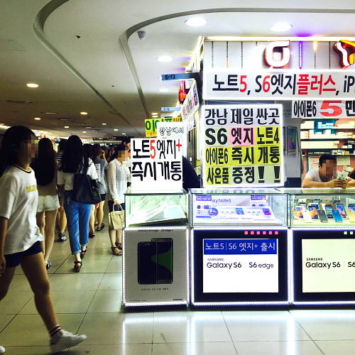 [프라임경제] 삼성전자의 전략 스마트폰 '갤럭시노트5'가 지난 20일 출시 후 첫 주말을 맞았지만, 침체된 시장 탓인지 서울 주요 대리점 및 판매점은 여전히 한산한 모습이었다.