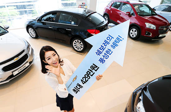 양사는 최근 개별소비세 인하로 최대 72만원까지 인하된 차량 가격에서 추가로 크루즈, 말리부, 올란도, 캡티바, 알페온, 아베오 차종에 무이자 혜택을 줌으로써 고객들이 더 좋은 조건으로 차량을 구매할 수 있게 할 예정이다.