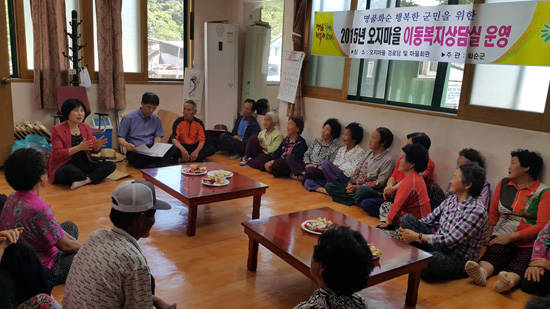 찾아가는 복지행정 실현을 위해 노인돌봄기본서비스 사업도 펼치고 있다. 군은 5억5200만원을 들여 65세 이상 홀로사는 노인 1200명에게 가정방문 안전 확인 등의 서비스를 하고 있다.