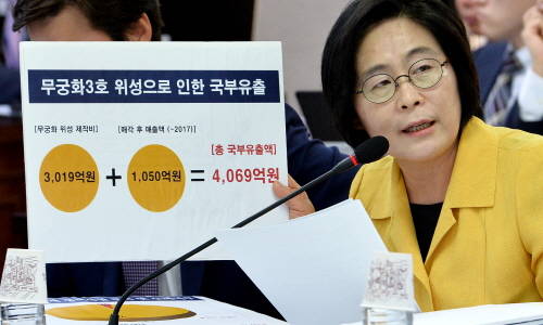 14일 국회 미래창조과학방송통신위원회 소속 유승희 새정치민주연합 의원은 "위성제작비 3019억원과 매각후 매출액 1050억원을 합해 총 국부 유출액은 4069원"이라고 짚었다.