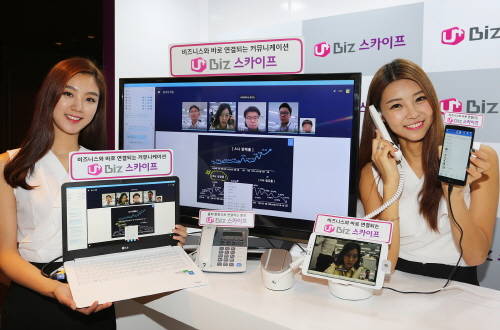 LG유플러스와 마이크로소프트(MS)가 선보인 비즈 스카이프는 △유선전화 △모바일 △PC △태블릿 등 기업의 모든 통신 수단을 연동해 스마트 워크플레이스 환경을 구현한다.