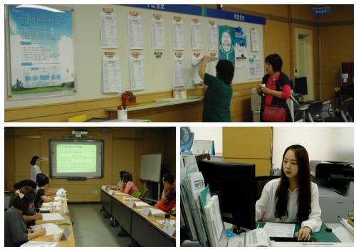 특히 상담사별 업무에 따라 자리가 배치돼 있었는데 구인처 4명과 구직처 3명으로 업무를 나눠 맡고 있었다. 충남일자리종합센터와 여성새로일하기센터 등 유관기관과 협력도 자연스럽게 잘 어우러지는 모습이 인상 깊다.