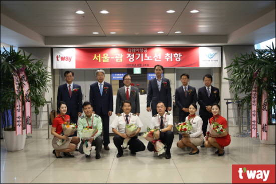 [프라임경제] 티웨이항공은 인천국제공항 여객터미널 3층 27번 게이트 앞에서 국제선 정기편인 인천~괌 노선 취항식을 갖고 운항을 시작했다고 24일 밝혔다.