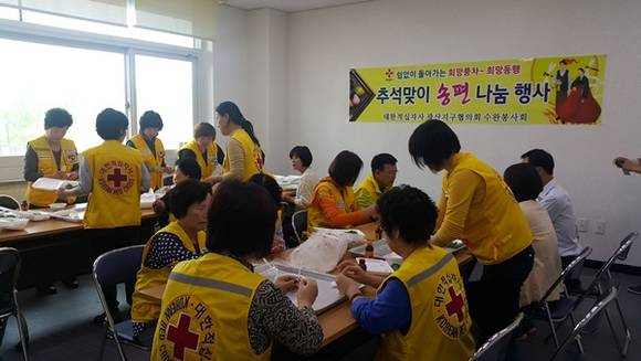 전날에는 수완동적십자봉사회 회원 30여명이 송편 빚기 행사를 통해 홀로 사는 어르신과 장애인 가정 100세대에 직접 전달했다. 같은 날 투게더광산 우산동위원회(위원장 김철주)는 홀로 사는 어르신, 중증장애인 등 어려운 이웃에게 생필품 260세트를 전달했다.
