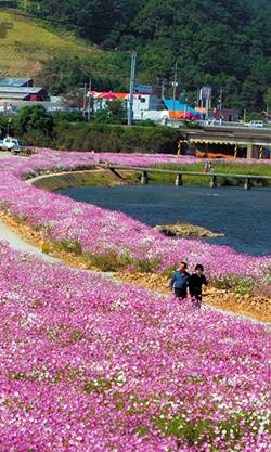 매년 10월이면 천변 좌우로 펼쳐진 코스모스가 약 1km에 걸쳐 장관을 이루며 친구와 연인, 가족들이 여기저기서 '찰칵 찰칵' 추억을 담기에 여념이 없다.