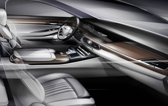 현대자동차(005380)는 23일 EQ900의 주요 사양 및 내장 렌더링을 공개하고, 전국 840여개 판매거점을 통해 사전계약을 받는다고 밝혔다.