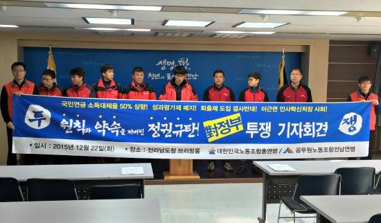[프라임경제] 대한민국공무원노동조합총연맹 소속 17개 시도연맹은 22일 오전 11시 전국 동시 기자회견을 갖고 '100만 공무원 전국 동시 대정부투쟁 돌입'을 선포했다.