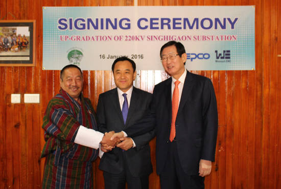[프라임경제] 한국전력 조환익 사장은 16일 부탄전력청(BPC) 겜 세링(Gem Tshering) 청장과 2560만달러(약 300억원) 규모의 '지능형 변전소 EPC 사업' 계약을 부탄 수도 팀푸 현지에서 체결했다.