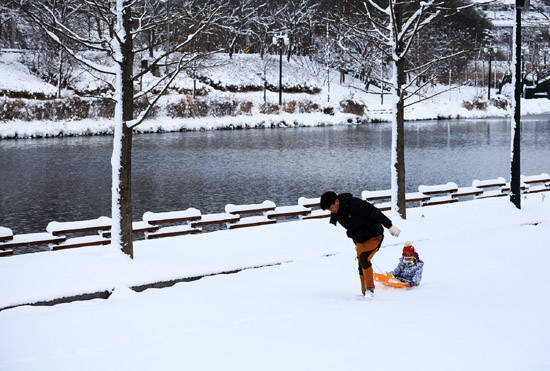 [프라임경제] 천연기념물 제366호 관방제림에 소복이 쌓인 눈이 '천연 눈썰매장'을 만들자 어린이들이 신나게 눈썰매를 타며 겨울을 만끽하고 있다.