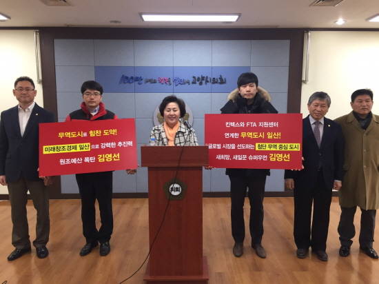 김영선 예비후보는 19일 오후 1시30 고양시청 브리핑룸에서 기자회견을 열어 고양시와 경기 북서부의 경제 구조를 변화시키기 위해서 무역 도시 조성이 필요하다고 밝혔다. 이와 동시에 지역 경제 활성화, 일자리 창출을 위한 확실한 미래 성장 동력을 확보해야 한다고 강조했다.