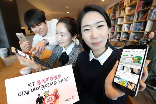 [프라임경제] KT(030200·회장 황창규)는 자사 웹툰서비스 '올레마켓웹툰' 애플리케이션이 애플 앱스토어를 통해 출시됐다고 20일 밝혔다. 이에 통신사 무관하게 아이폰 사용자 누구나 앱을 통해 웹툰을 볼 수 있게 됐다.