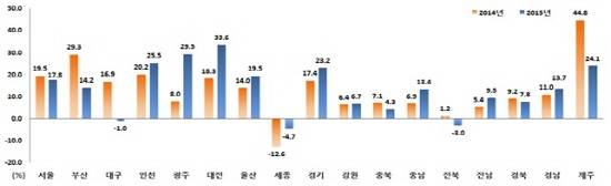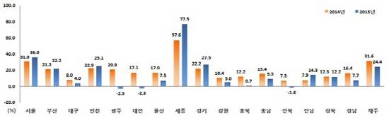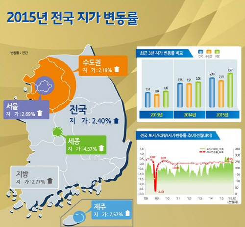 [프라임경제] 2015년 전국 지가가 전년 말 대비 2.40% 상승한 것으로 나타났다. 이는 2008년 금융위기 이후 가장 높은 수준으로 2010년 11월부터 62개월 연속 오름세다.