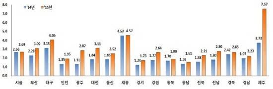 반면, 지방은 제주가 7.57% 상승하며 전국 최고 상승률을 보였고, 세종(4.75%)과 대구(4.06%) 등 11개 시도도 전국 평균을 웃돌았다.