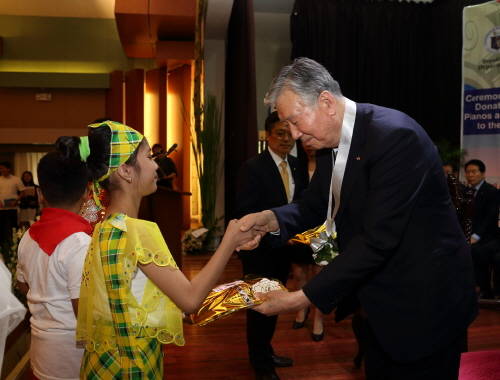 한편, 이 회장은 그동안 국내 기부활동 뿐 아니라 필리핀을 포함한 아시아·태평양지역 14개국 및 아프리카에서 유학 온 학생들에게 장학금을 지원하고, 초등학교 600여곳에 교육용 칠판 60만여개와 디지털피아노 6만여대를 기증한 바 있다.