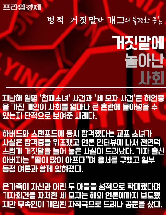 지난해 일명 '천재소녀 사건' '세모자 사건' 등은 허언증을 가진 개인이 사회를 얼마나 큰 혼란에 몰아넣을 수 있는지 단적으로 보여줬다.