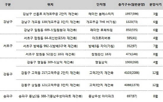 그중에서도 개포동과 일원동·잠원동·고덕동에서 공급물량이 쏟아질 전망이다.