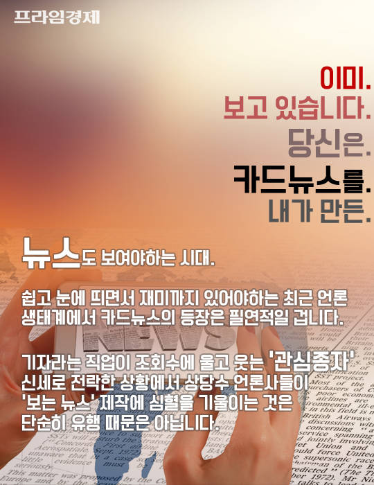 [프라임경제] 뉴스도 보여야 하는 시대. 쉽고 눈에 띄면서 재미까지 있어야 하는 최근 언론 생태계에서 카드뉴스의 등장은 필연적이다.